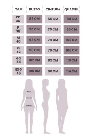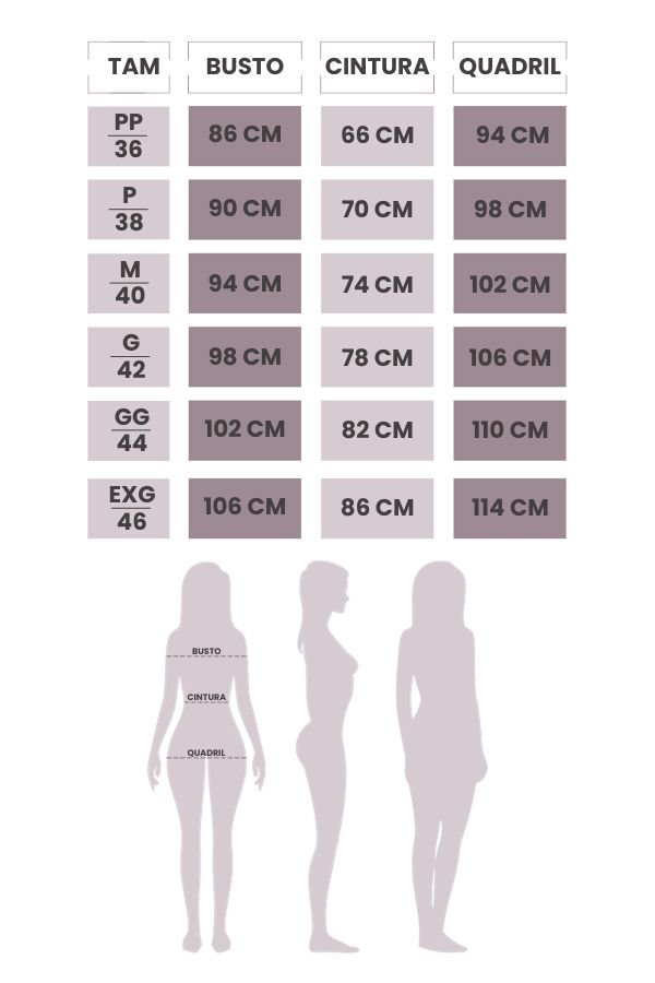 Composição: 100% Poliéster – Detalhe: 55% Poliéster / 45% Viscose