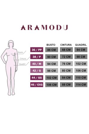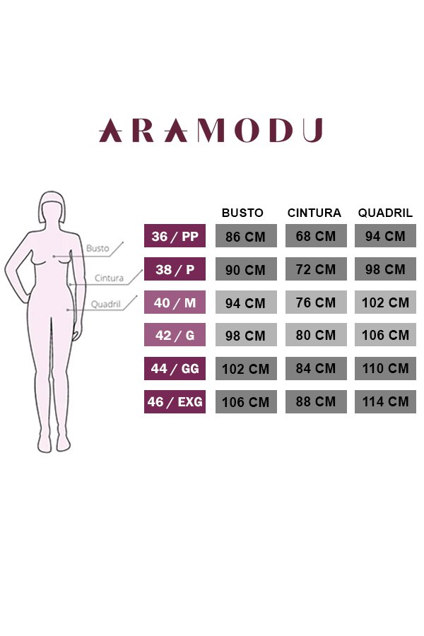 Composição: 94% Viscose / 6% Elastano – Detalhe Paetês: 95% Poliéster / 5% Elastano