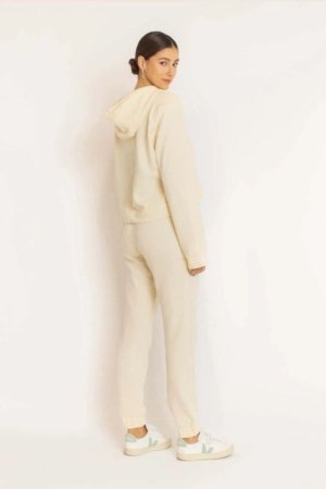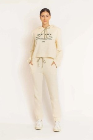 Conjunto Confeccionado Em Moletinho, Blusa Com Modelagem Quadrada, Touca Com Cordão Para Ajuste, Bordado Na Frente, Calça Modelo Reto, Aplicação De Elástico E Cordão No Cós E Bolsos.