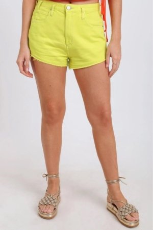 Shorts Confeccionado Em Sarja, Detalhe Na Barra E Acabamento Desfiado.